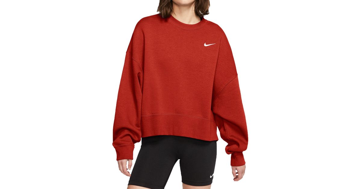 Nike Sportswear Essentials Fleece Cropped Crew In Orange Lyst