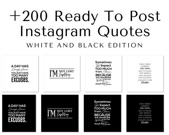 200 Instagram Post Quotes White Black Edition Social Media Etsy